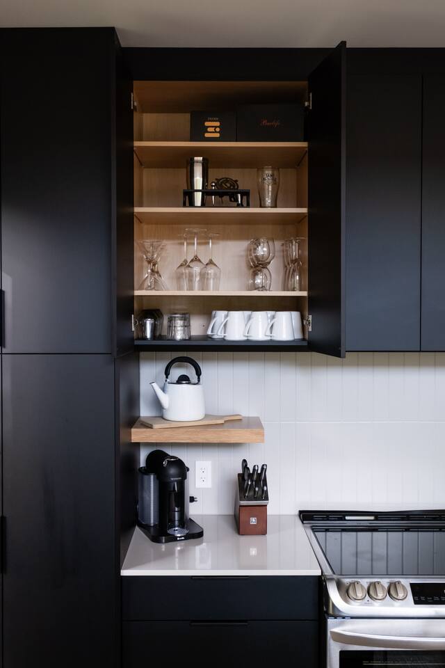 • Coffee & Tea: Nespresso Vertuo with starter sleeve of pods, drip coffee maker with ground coffee, French press, plus a selection of black & green teas