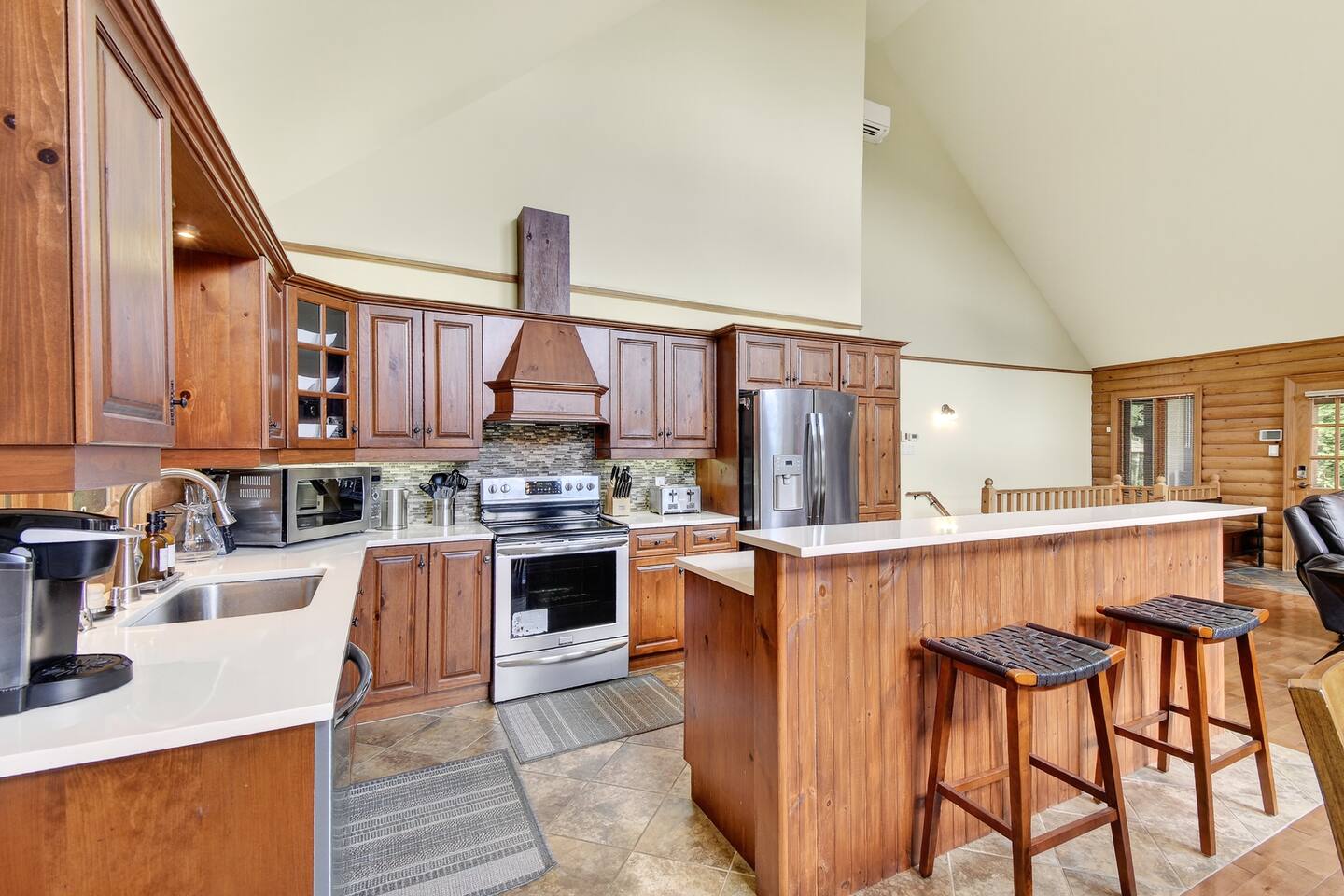- Main Living Room: Vaulted ceilings, natural light, and a fireplace center piece 🔥