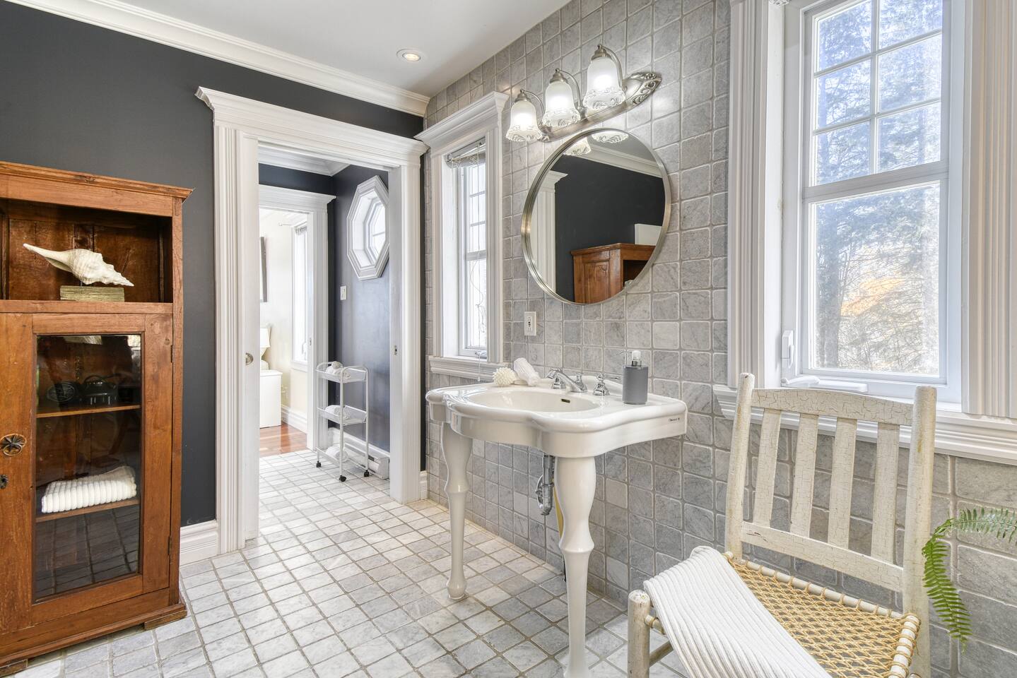 - Master Bedroom – King-size bed with private balcony access, ensuite half-bathroom, and a cozy Daybed that turns into a queen/king size when fully opened